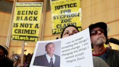 According to ABC 10, about 50 demonstrators had gathered at an intersection near the neighborhood where Clark grew up. They were participating in ongoing protests to draw attention to police violence targeting African Americans in the wake of Clark’s death at the hands of Sacramento police on March 18. Police officers fired about 20 times at the unarmed father of two in his grandmother’s backyard. He was struck by eight bullets—seven of them in the back.